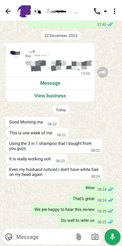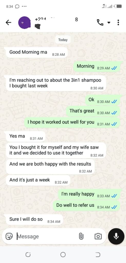 THIS NATURAL SHAMPOO DOES NOT CAUSE HAIR LOSS, NOR DAMAGE HAIR, IT GIVES YOU HEALTHY HAIR AND MAKES YOUR HAIR LOOK NATURALLY BLACK AND NO SIDE EFFECTS